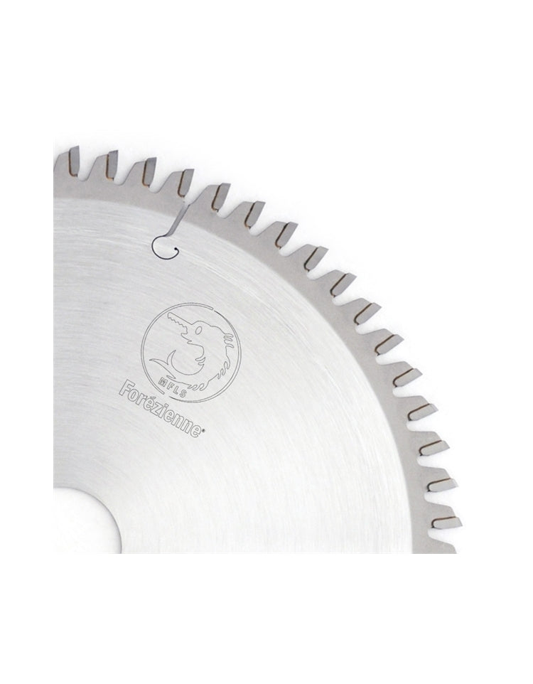 Lame circulaire en carbure pour la coupe de métaux non fereux. Angle de coupe négatif pour plaquer la pièce sur la table de travail.